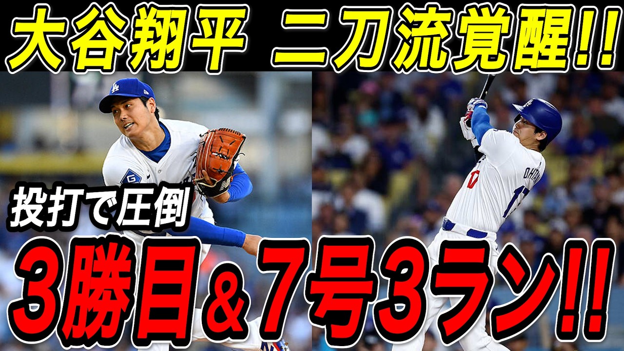 • 大谷翔平 3勝目&7号3ランホームラン!!7回10奪三振の圧巻投球!2試合ぶりの特大本塁打で二刀流完全覚醒!マーリンズ戦【4月29日】【MLB/大谷翔平/海外の反応】