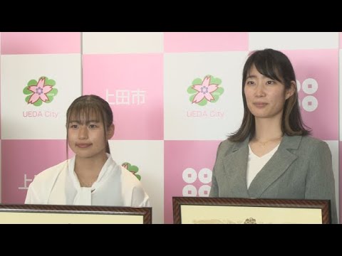 第24回オリンピック冬季競技大会をはじめとする各大会に出場された今井胡桃選手と岩淵香里選手に対し、市長表彰を授与しました。