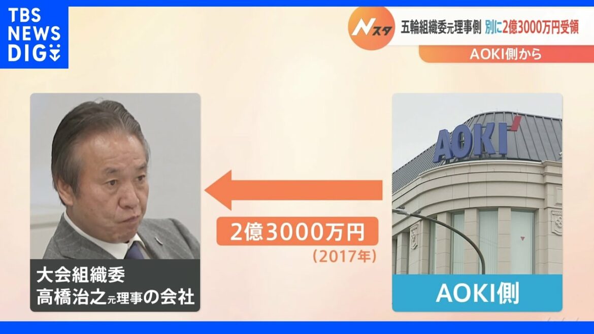 東京地検特捜部は、大会組織委員会の高橋治之元理事(78)の会社が、紳士服大手「AOKI」側から2017年以降、総額およそ4500万円を受け取った契約をめぐり受託収賄の疑いで捜査しています。