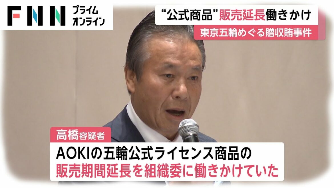 AOKIは、オリンピックの公式ライセンス商品を展開していたが、関係者によると、高橋容疑者が、販売期間の延長を組織委の幹部に働きかけていたことがわかった。