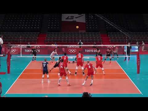 Ran Takahashi serving, passing, spiking and blocking vs. Italy and Poland at the Tokyo 2020 Olympic Games.