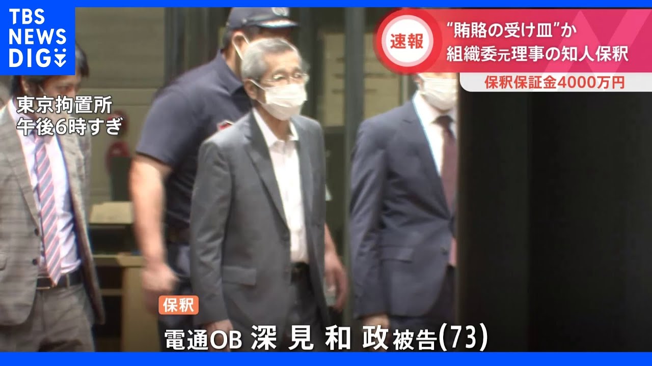 深々と一礼するのは大会組織委員会元理事・高橋治之容疑者(78)の知人で、電通OBの深見和政被告(73)です。保釈保証金合わせて4000万円を納付し午後6時過ぎに保釈されました。
