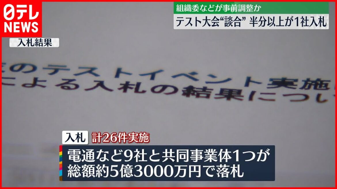 東京オリンピック・パラリンピックのテスト大会事業をめぐる談合事件で、対象とされた入札のうち半数以上が、1社のみの入札参加だったことが分かりました。