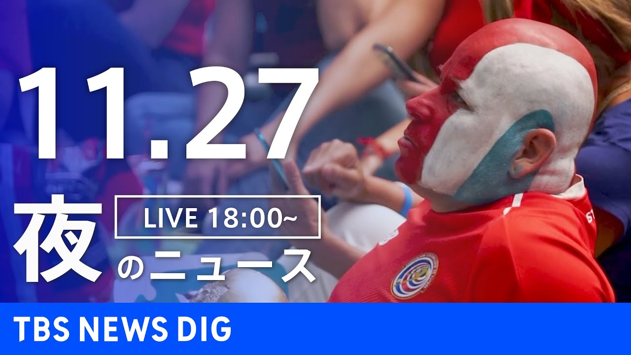 11月27日 (日) の夕方から TBS NEWS で放送された最新のニュースをダイジェストでお届けします。