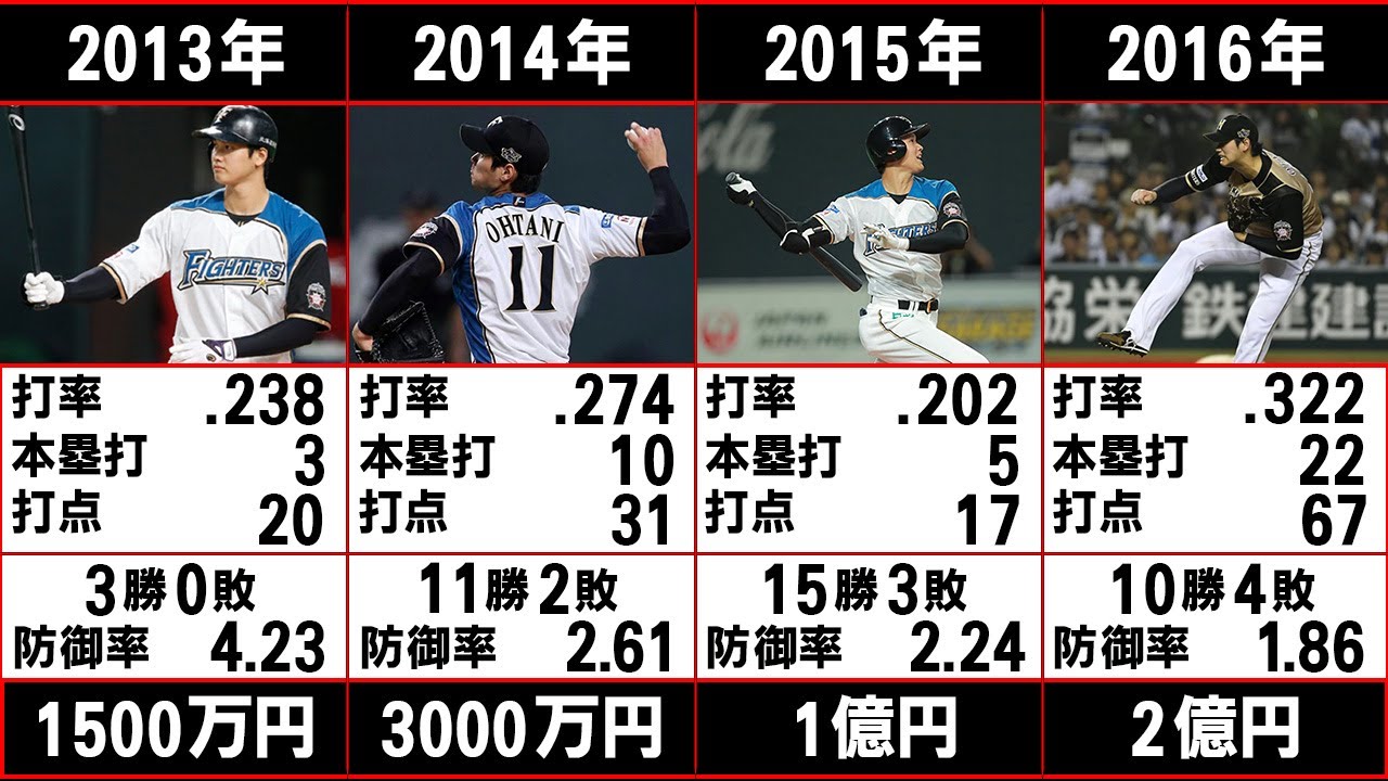 今回は大谷翔平選手の年度別成績と年棒推移を紹介していきます。