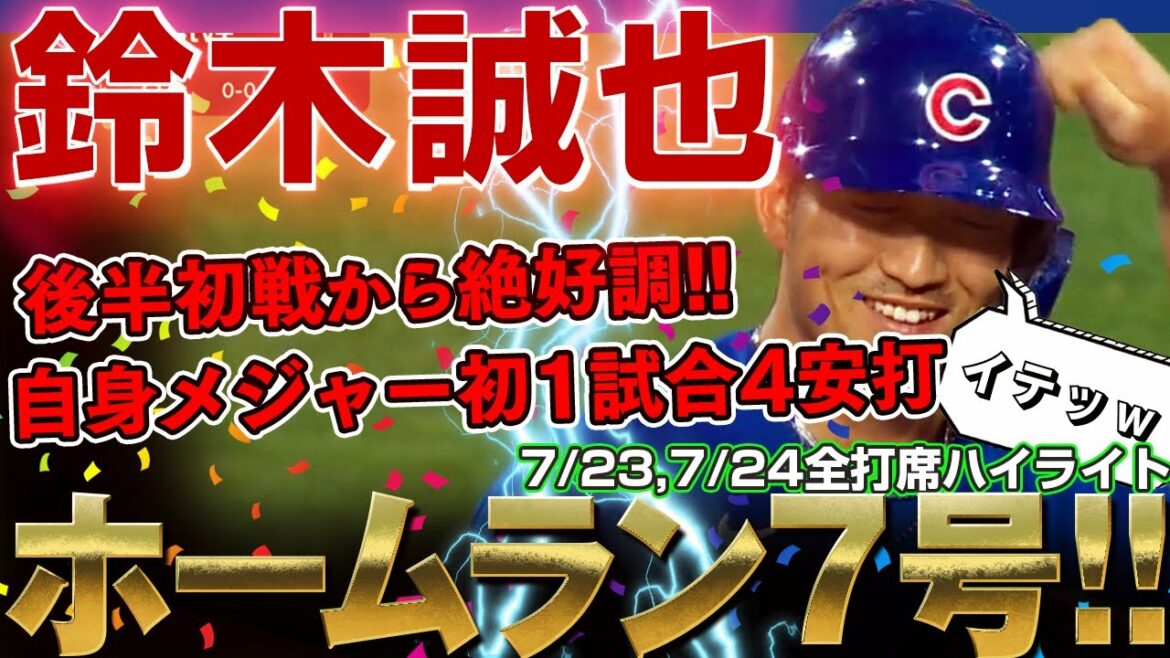誠也さんメジャー初の1試合4安打、ホームラン7号もぶっ放す