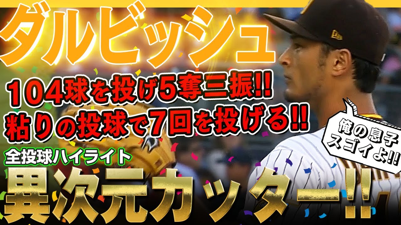 ダルビッシュ有さんは序盤乱調気味で制球に苦しむも、徐々に立て直しいき7回104球を投げる粘投で5奪三振1失点で7勝目をあげました
