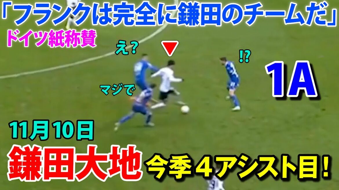 鎌田大地、今季4アシスト目!「フランクフルトは完全に鎌田のチームだ」ドイツ紙称賛!日本代表でも期待!11月10日
