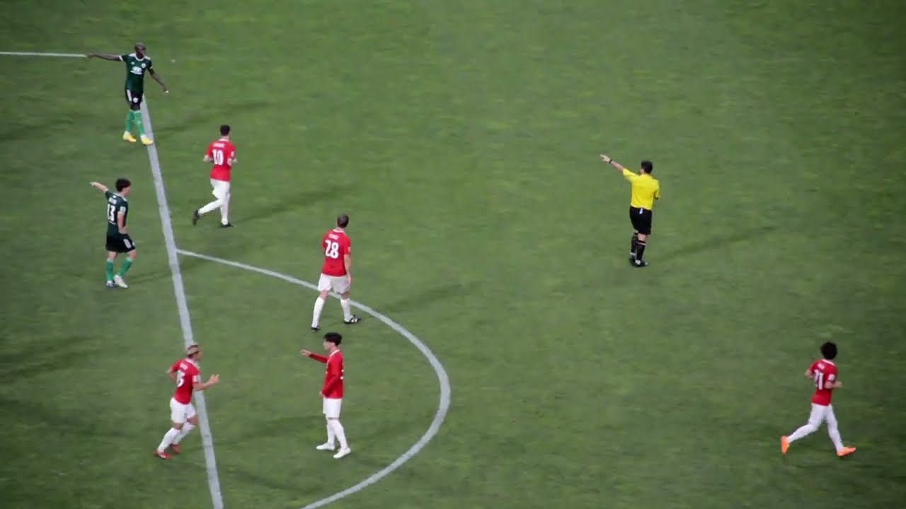 120分 10 ダヴィド モーベルグからのパスを受けたのはスプリントしてきた2 酒井宏樹。クロスのこぼれ球に反応した21 大久保 智明がボレー、これを15 明本孝浩が頭でコースを変える。相手GKにセーブされるが、こぼれ球を7 キャスパー ユンカーが押し込み、土壇場で同点に追い付いた。