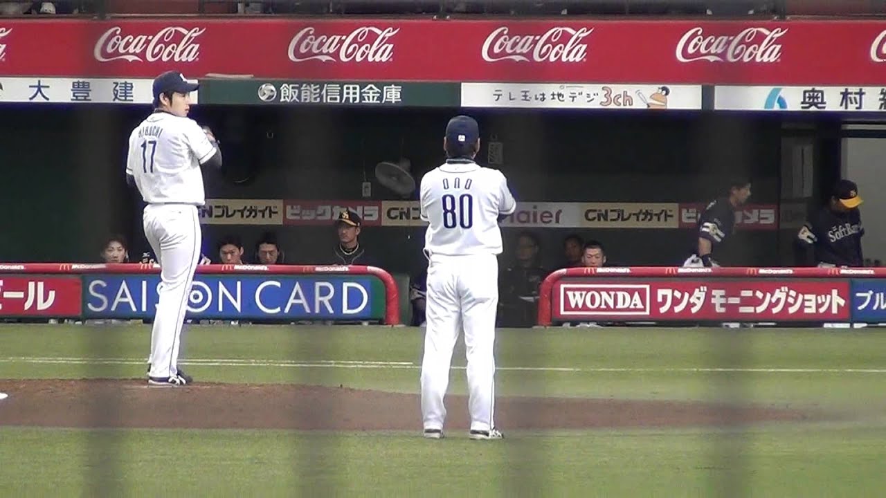 西武・菊池投手の投球練習。この日が中継ぎ初登板。
