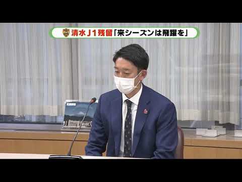 クラブの社長とともに6日、平岡宏章監督とキャプテンの権田修一選手が静岡市役所を訪れました。