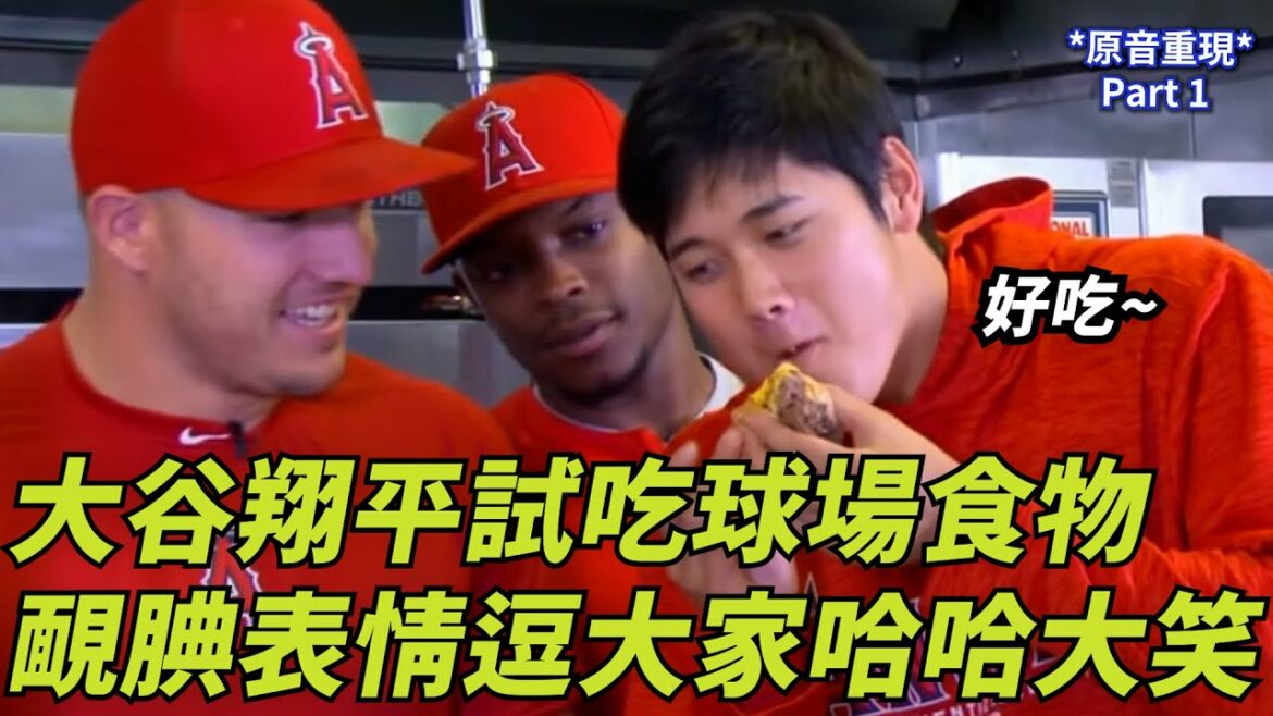 大谷翔平大聯盟第一年(2018)與球隊拍攝試吃球場食物影片