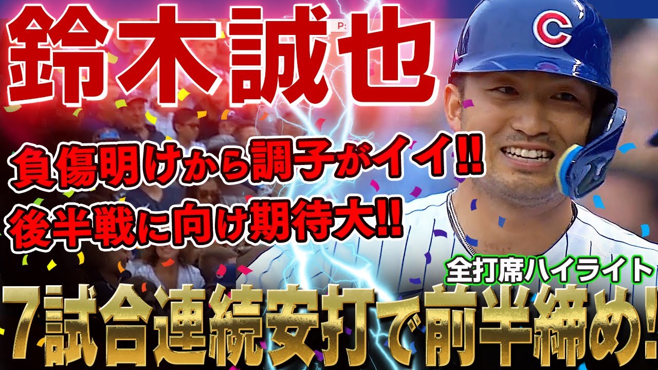 鈴木誠也さんが7試合連続安打を決め前半戦を終えました
