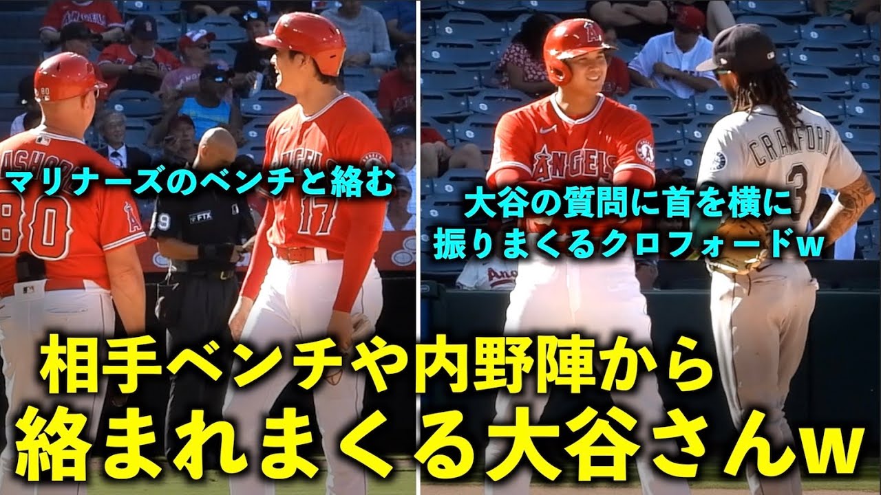 大谷翔平がマリナーズのベンチ、内野陣から絡まれまくるw 質問に首を横に振り続けるクロフォードに注目! エンゼルス【現地映像】9月20日 第4戦