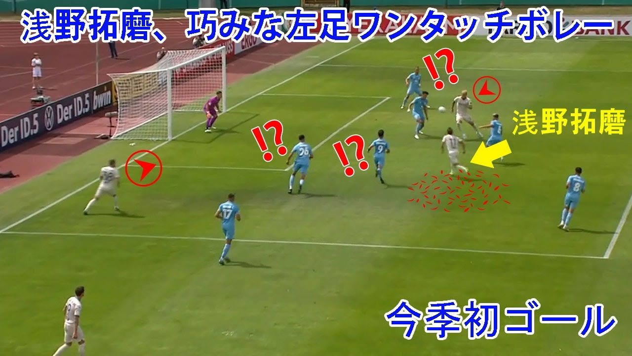 浅野拓磨、巧みな左足ワンタッチボレーで今季初ゴール
