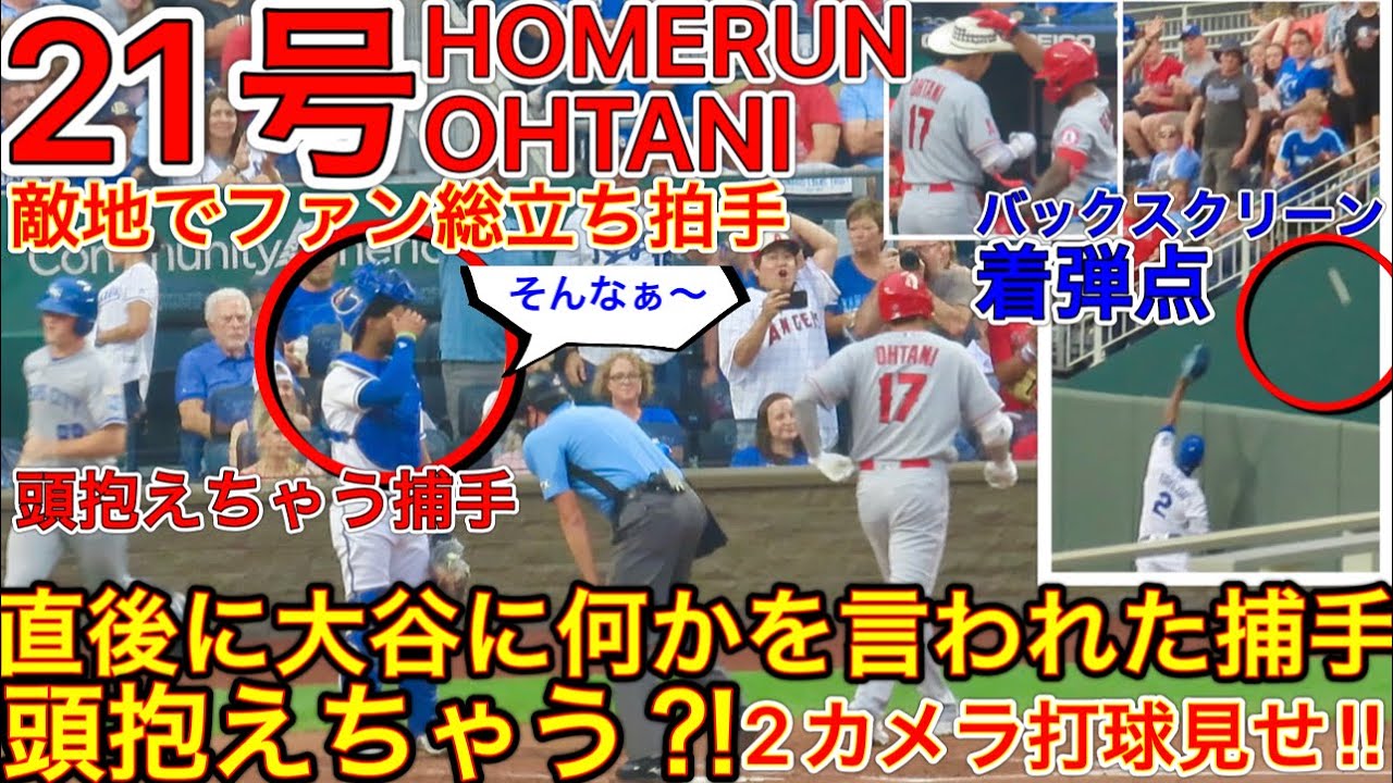 敵地ファン総立ち拍手のベースランがカッコ良すぎた‼︎【裏側21号HOMERUN】大谷翔平選手の放ったバックスクリーンへの豪快弾のファンの喜び&対戦捕手とのやり取り!2カメラで打球&着弾点を見よ。