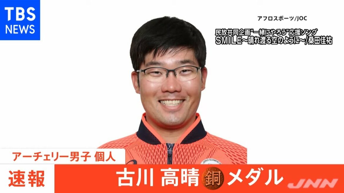 東京オリンピック・アーチェリー男子個人古川高晴選手が、今大会で史上初団体の銅メダルに続き個人でも銅メダルを獲得。5大会連続出場の36歳は3位決定戦で台湾の選手を下し、ロンドン大会の個人銀メダルに続く個人でのメダル獲得です。(31日16:44)