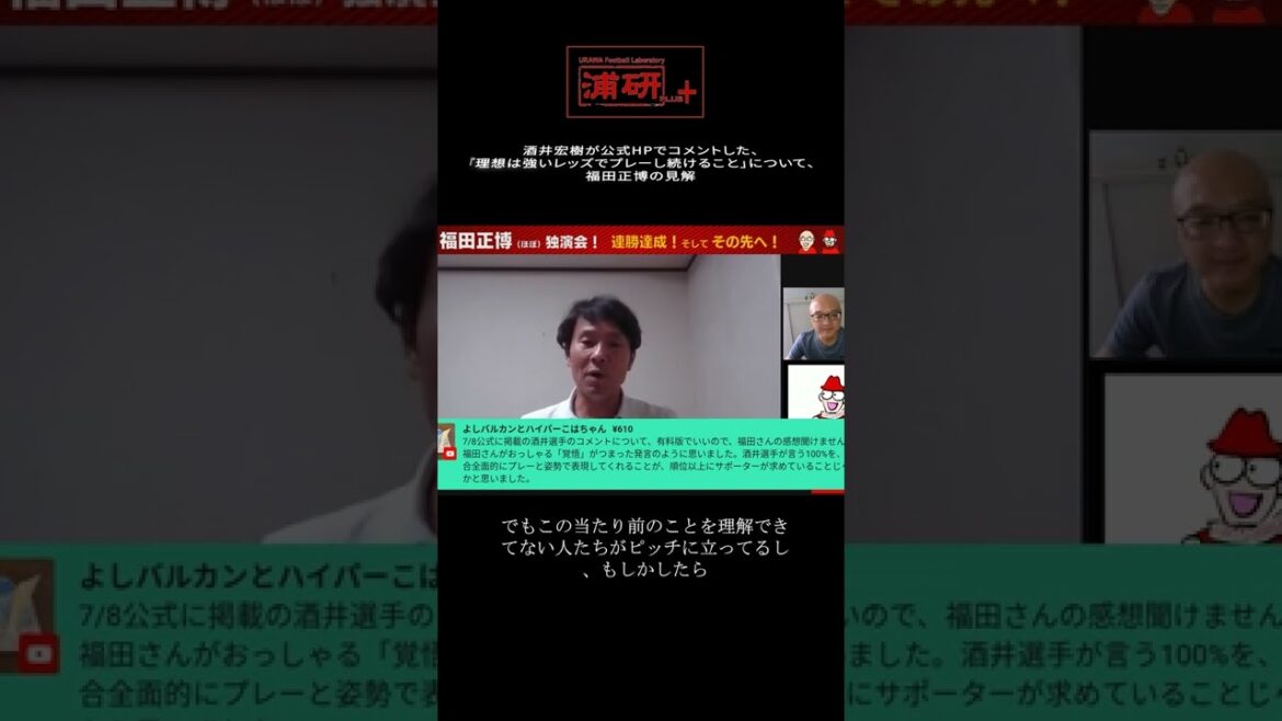 浦研+『浦和レッズ、リーグ戦連勝! 福田正博の分析は?【LIVE】』で、福田正博氏が酒井宏樹の公式コメントの内容について見解を述べるシーン。 #shorts