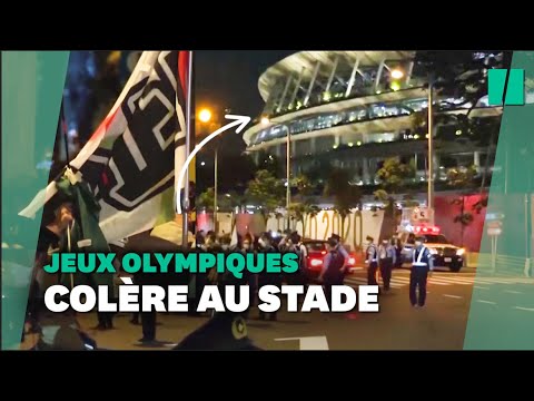 開会式が行われたスタジアムの前で、完全な流行の回復でオリンピックの開催を非難するために何百もありました。 。