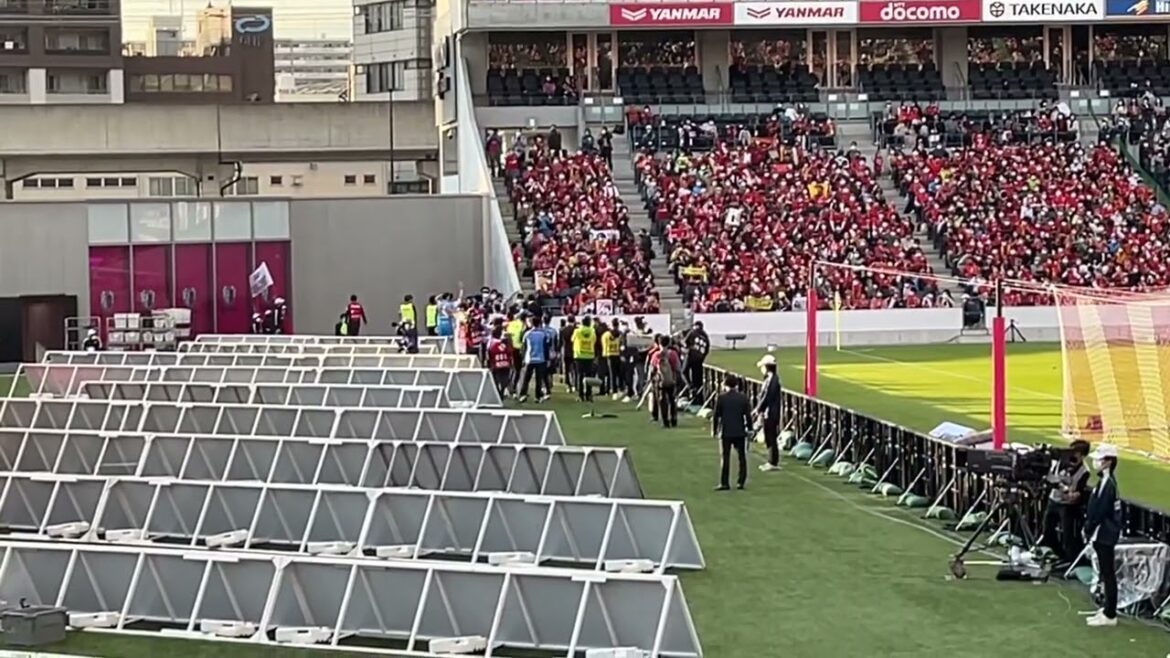 グランパス2022最終戦 試合終了〜ファミリーに挨拶〜ATゴールの相馬勇紀がヒーローインタビューを終えファミリーに感謝を述べる