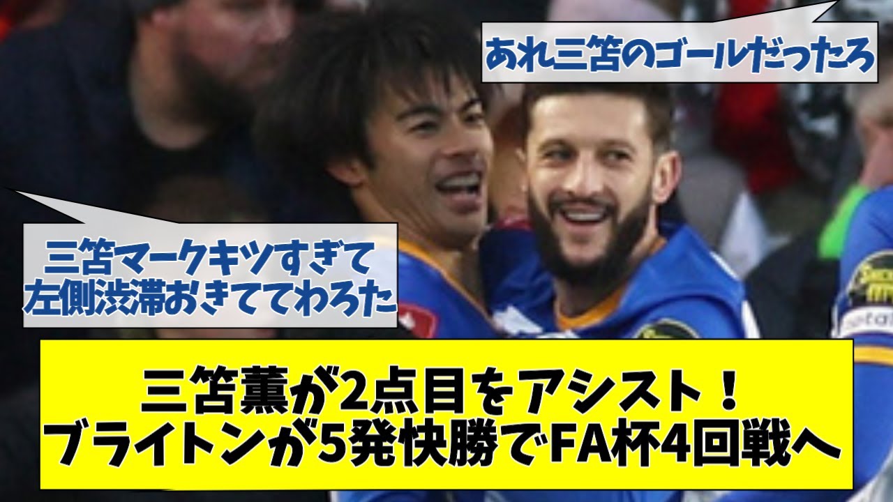 三笘薫が2点目をアシスト!ブライトンが5発快勝でFA杯4回戦へ 【2chサッカースレ】