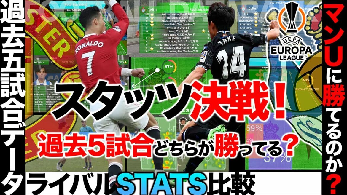 今回は、本日、UEFAヨーロッパリーグ・UELのオモニア戦が終了し、マンUが勝利したことで、最終戦まで、1位がわからなくなりました。そこで、これまでのソシエダとマンチェスター・ユナイテッドの5試合のstats結果を基に、チーム&選手のスタッツ比較を行いましたので、是非、勝利できるかどうかの判断・分析の材料に!TAKE・KUBO。タケ・クボ。クリスティアーノ・ロナウド、ブルーノ・フェルナンデス、マーカス・ラッシュフォード、カゼミーロ等々と比較しちゃいます♪