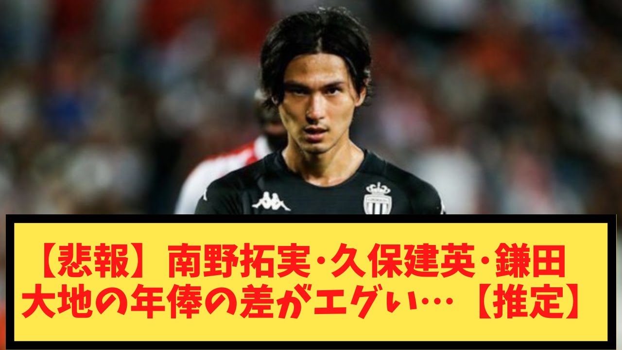 【悲報】南野拓実・久保建英・鎌田大地の年俸のさがエグい…【推定】