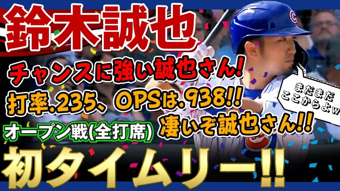 鈴木誠也選手がオープン戦初シングルヒット!タイムリーを放つ!さらにヒットを重ね3打数2安打1打点と活躍!打率.235、OPSは.938!凄いぞ鈴木誠也さん!