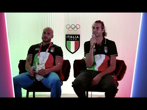 走り幅跳びと100メートルで金メダルを獲得した後の東京での2人の青い英雄の記者会見。