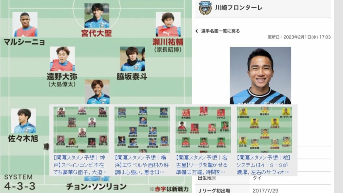 2023年シーズンのJ1リーグが、2月17日にいよいよ幕を開ける。本稿では、17日の“オープニングマッチ”で、昨季王者の横浜F・マリノスをホームに迎え撃つ川崎フロンターレの予想スタメンをお届けする。