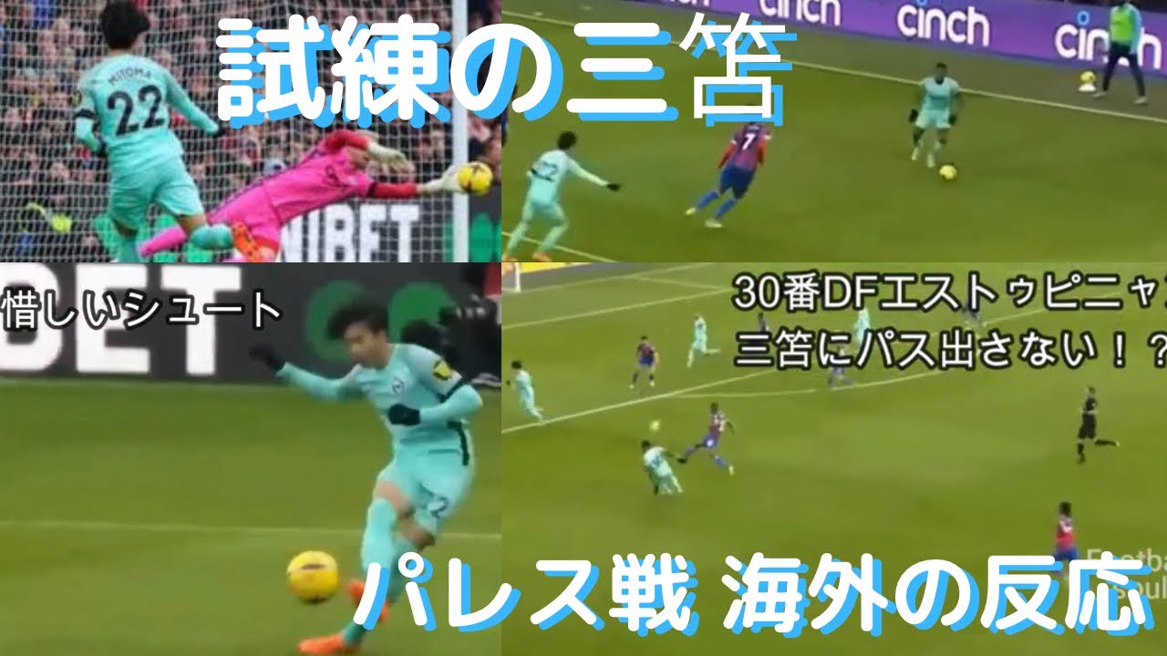 三笘薫ブライトン1-1クリスタルパレス(22年2月11日、プレミアリーグ第23節)三笘薫の惜しいシュートを放ち、エストゥピニャンはパス出さない!?問題「こういう試合が成長させてくれる」海外の反応