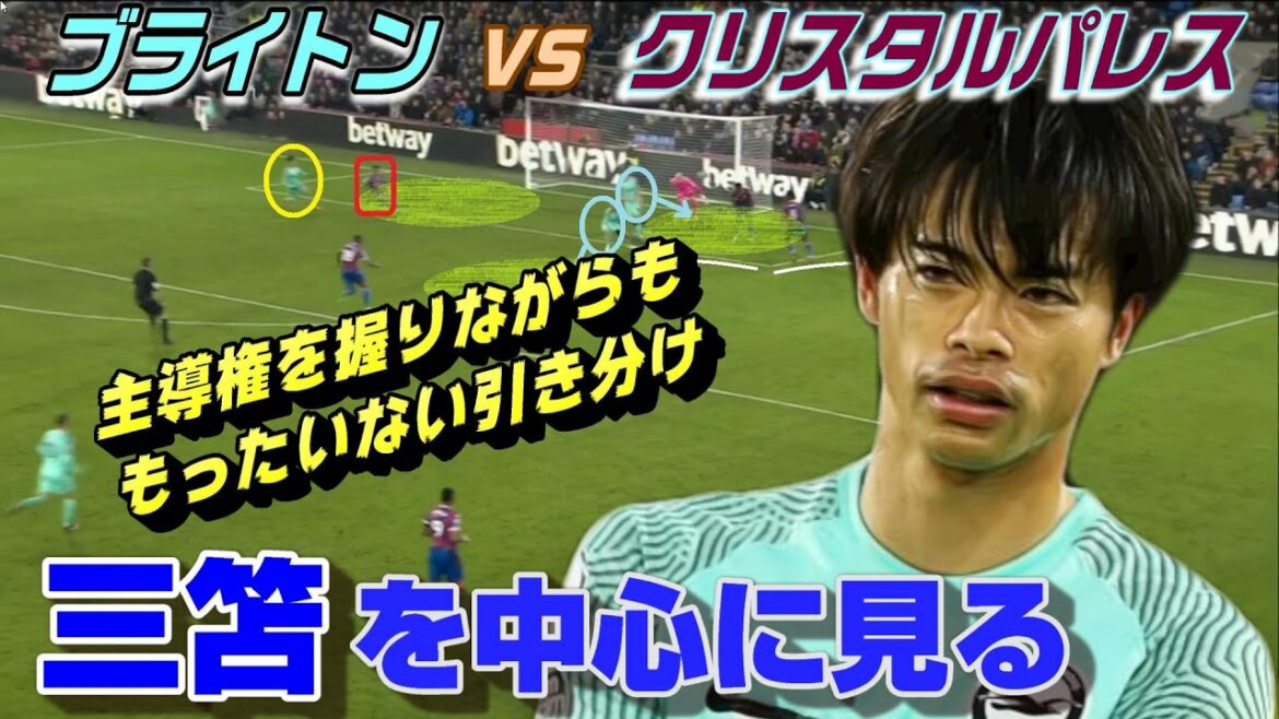 プレミアリーグ三笘先発出場のクリスタルパレスvsブライトンは、1-1の引き分けの試合を解説してみました。