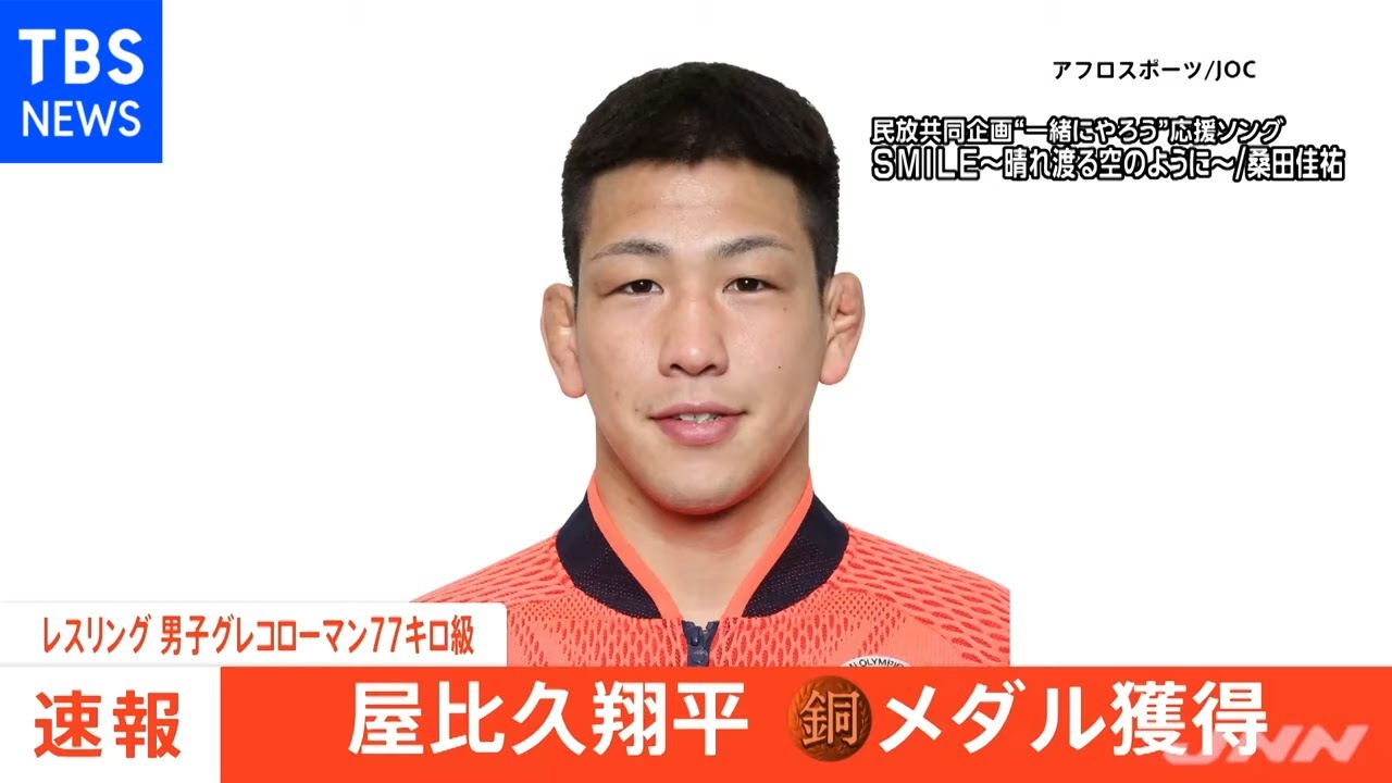 東京オリンピック、レスリング男子グレコローマン77キロ級3位決定戦。オリンピック初出場の沖縄県出身・26歳・屋比久翔平選手がイランの選手に13-3で勝ち、銅メダルを獲得しました。1989年の世界選手権代表だった父の保さんが届かなかったオリンピック出場をかなえ、快挙を達成しました。(03日19:56)