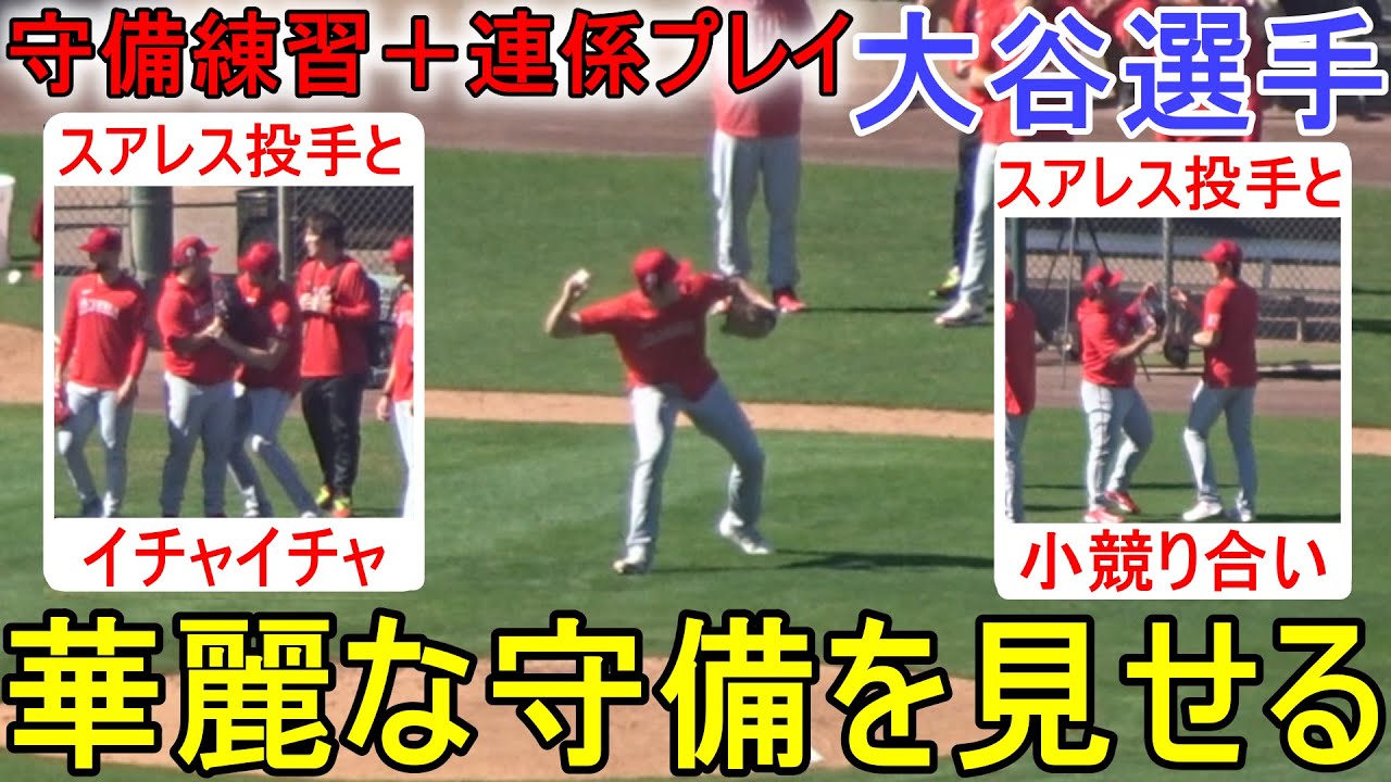 華麗な守備を見せる&またまたスアレス投手との絡み!【大谷翔平選手】守備練習+連係プレイ Shohei Ohtani 2023 Spring Training Day 6