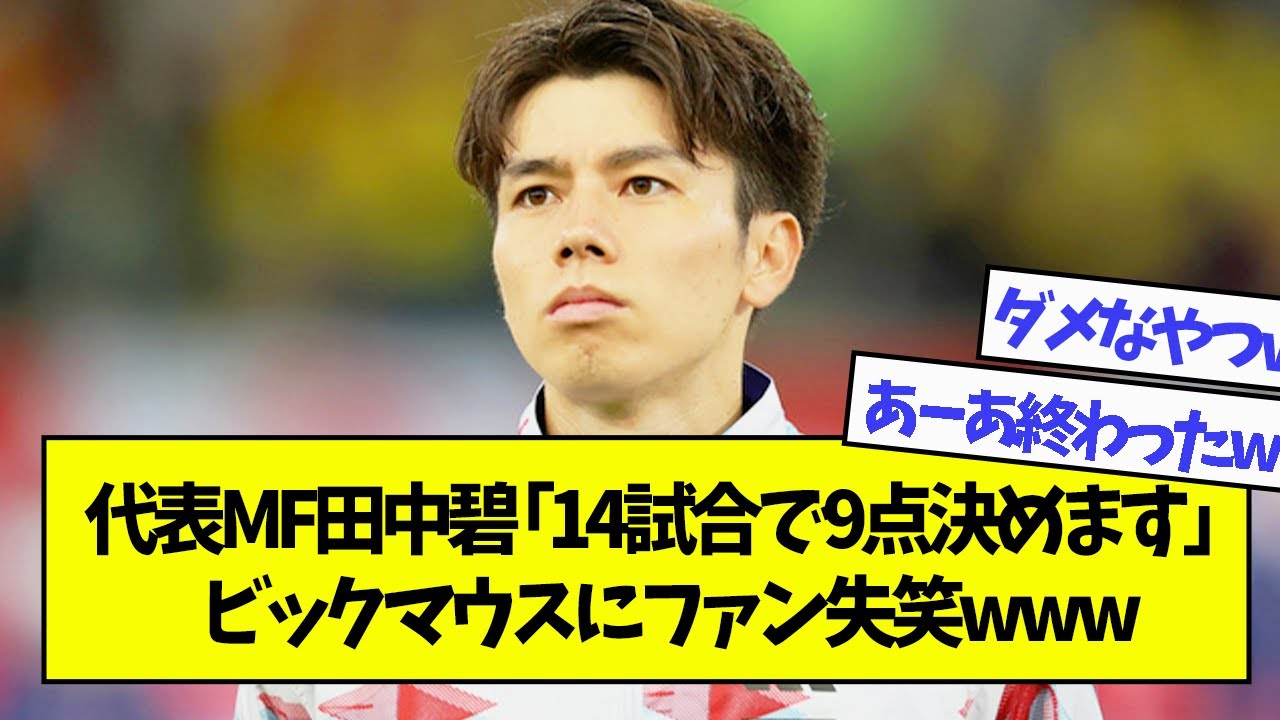 代表MF田中碧「14試合で9点決めます」ビックマウスにファン失笑www