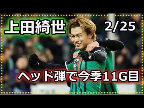 【速報】上田綺世!DFに挟まれながらもCFらしいヘッド弾!