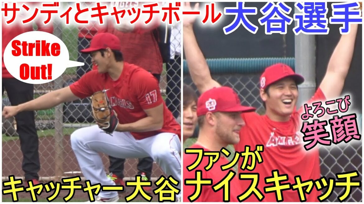 サンドバル投手と仲良くキャッチボールをする大谷翔平選手。
