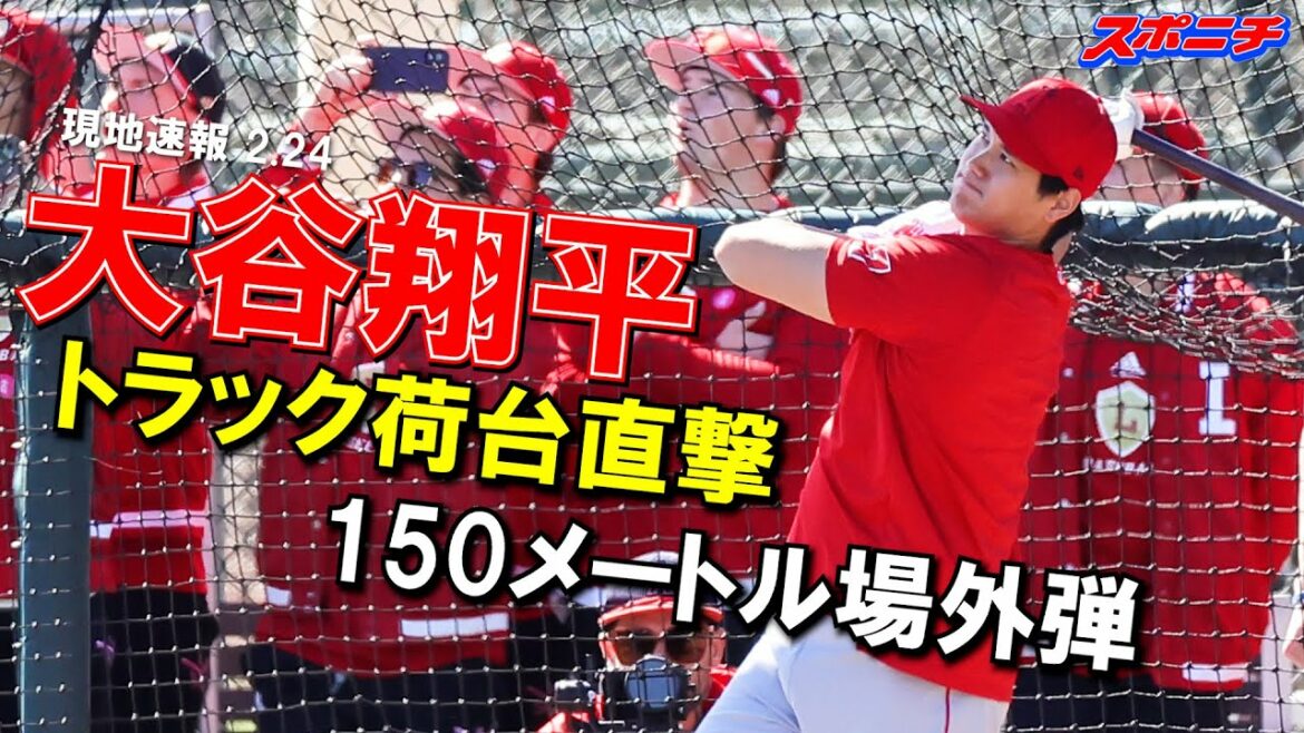 エンゼルスの大谷翔平投手(28)が24日(日本時間25日)、屋外フリー打撃に参加。マイナーグラウンド右中間後方の駐車場に停車中のピックアップトラックの荷台に直撃する推定飛距離150メートルの特大弾を放った。