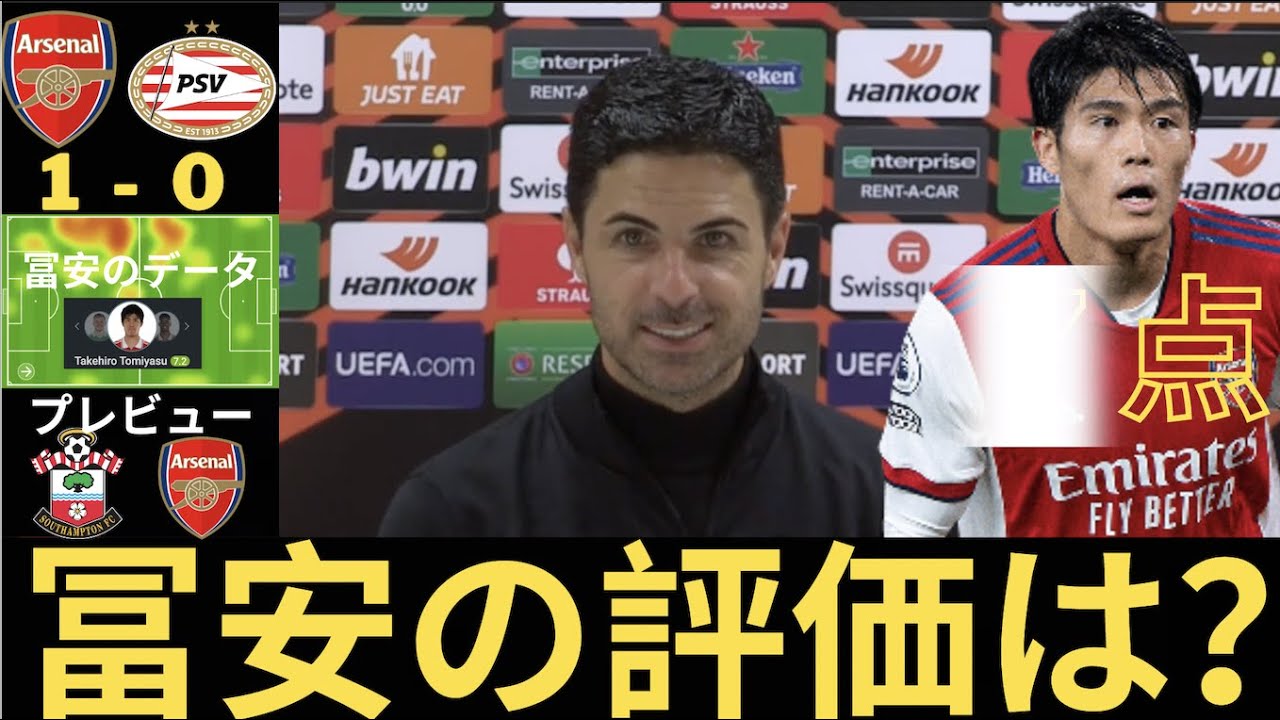 PSV戦の冨安を評価する現地アーセナル・サポ、冨安のデータ