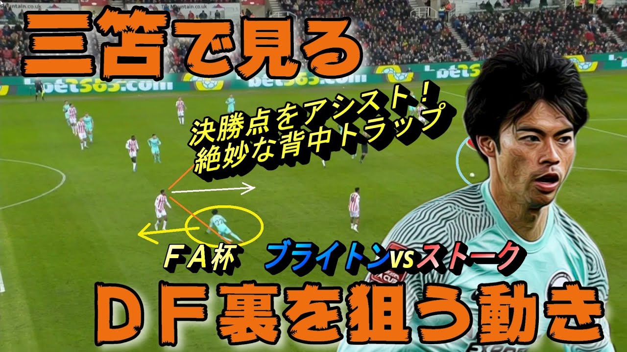 日本代表MF・ブライトンの三笘薫が決勝点をアシストして、FAカップのベスト8に入ったストーク戦を三苫を中心に見ていきましょう。