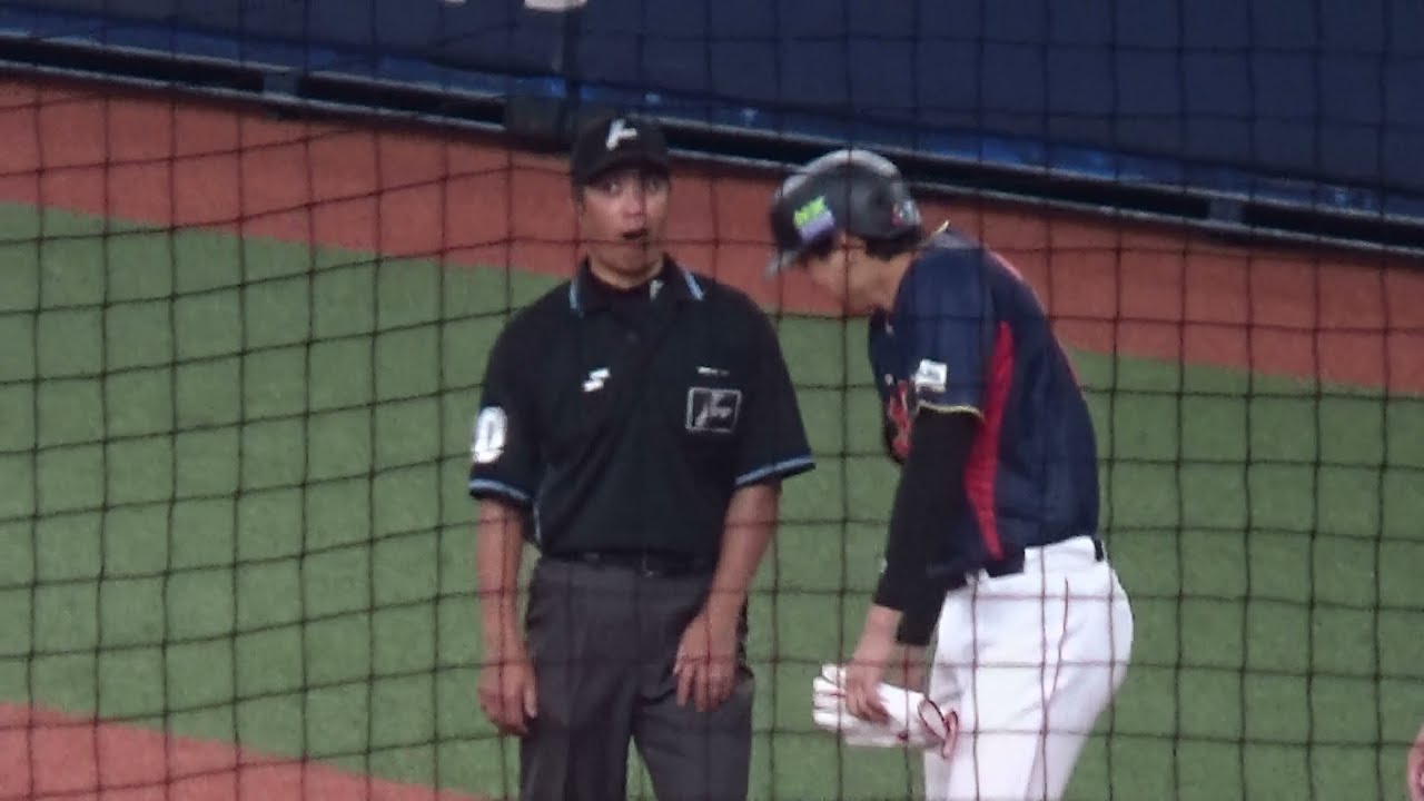一塁ベース上ではこの試合で一塁塁審を務めた白井一行審判員と何やら談笑したり、笑い合ったり、ふざけあったり…(笑)