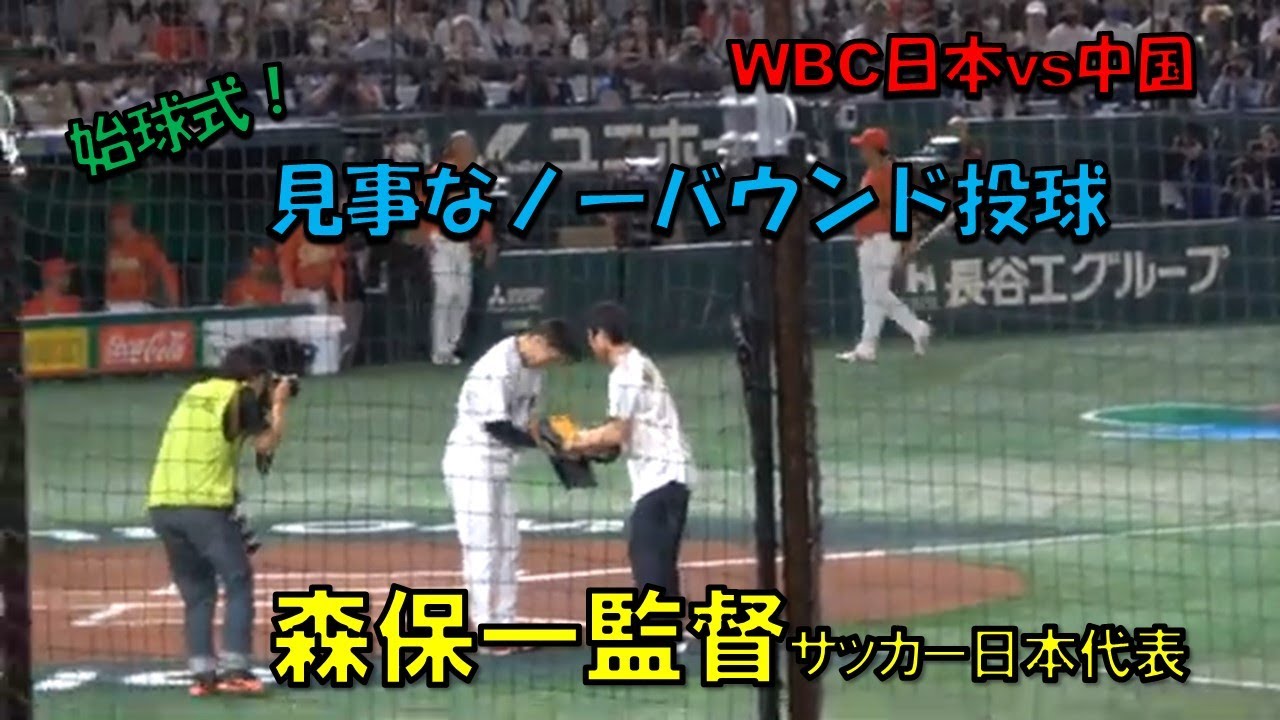 森保一監督 サッカー日本代表監督 見事なノーバウンド投球始球式 WBC 2023/3/9 日本対中国 東京ドーム 【現地映像】