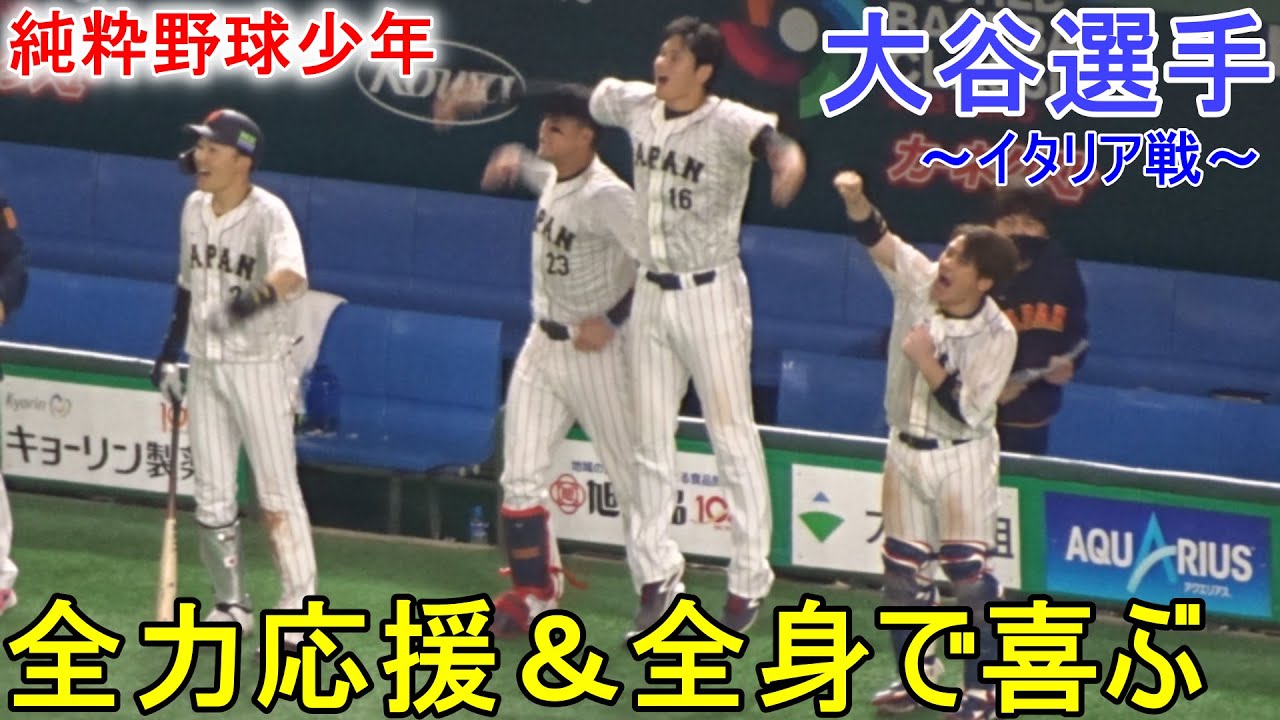 全力でチームメイトを応援して、少年の様に飛び上がって全身で喜ぶ大谷翔平選手。~5回の攻撃~ WBC2023~イタリア戦~ 3番ピッチャーで出場の大谷翔平選手 @Shinsuke Handyman #大谷翔平 #侍ジャパン #wbc2023 2023BaseballItaliaItalyJapanMajor League BaseballMLBohtaniOhtani ShoheishoheiShohei OHtaniWBCイタリアセイフティーバント侍ジャパン大谷大谷翔平日本翔平 NIHON2020.COM