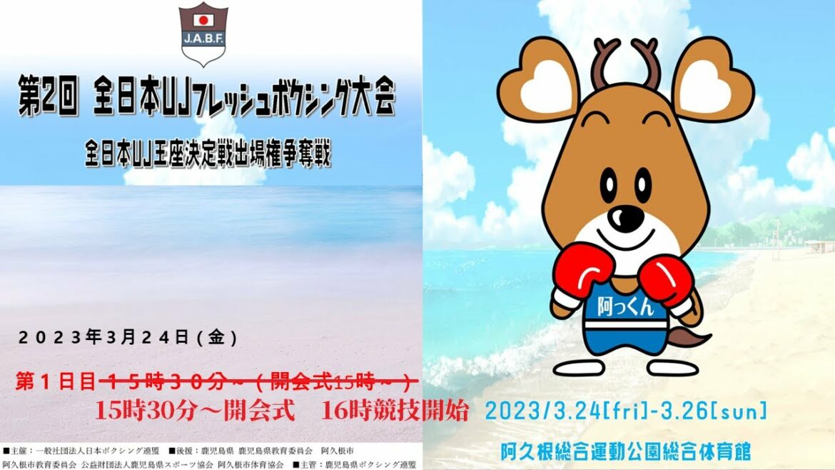 大会名 :第2回全日本UJフレッシュボクシング大会 兼 全日本UJ 王座決定戦出場権争奪戦 大会期間:2023年3月24日(金)~26日(日) 開始時刻:試合開始:15時30分~(開会式15時~) 大会会場:阿久根市総合体育館(鹿児島県) BoxingJABFOlympics 2020Olympics 2021Tokyo 2020Tokyo 2021Tokyo OlympicsTokyo Olympics 2020Tokyo Olympics 2021Tokyo Olympics Vlogアマチュアボクシングアマボクオリンピックオリンピックボクシングボクシング東京オリンピック東京オリンピック Vlog東京五輪東京五輪 Vlog NIHON2020.COM