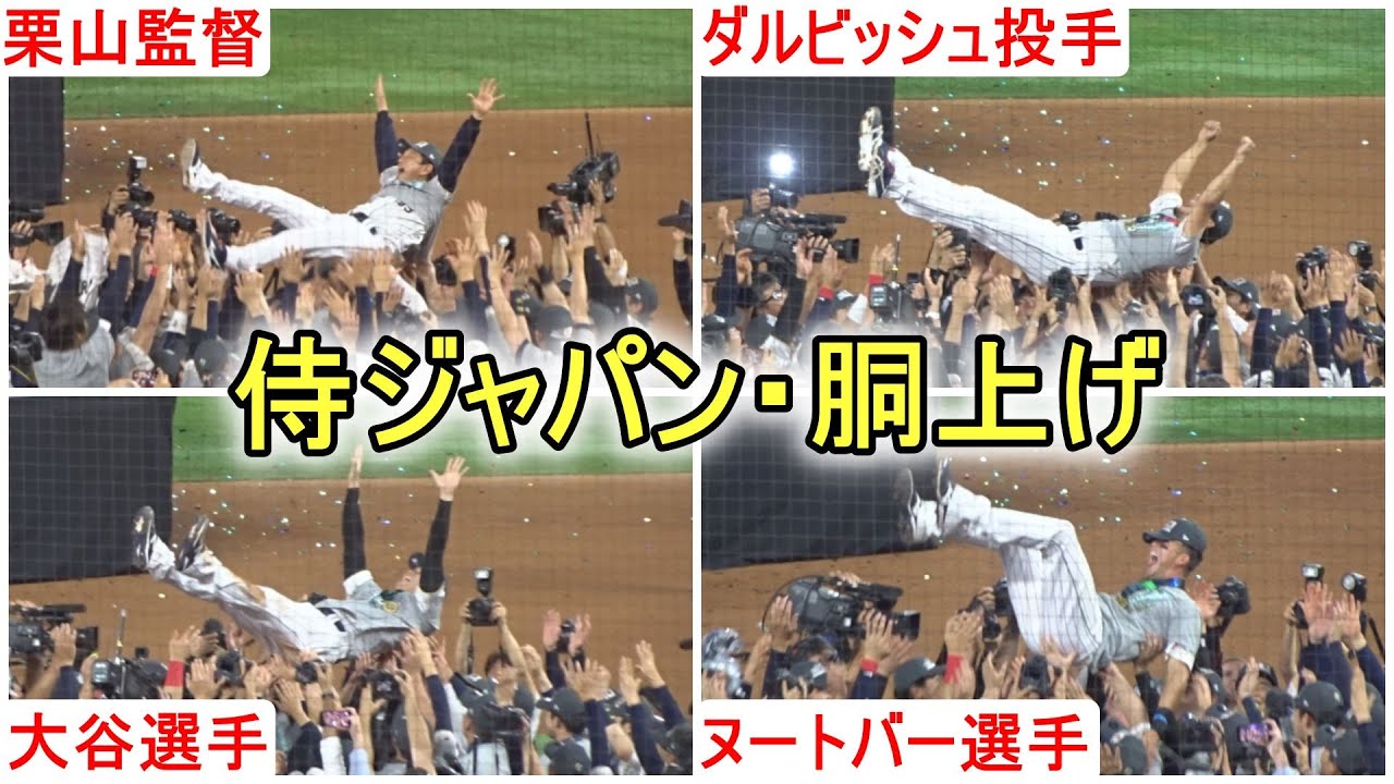 侍ジャパンに胴上げされる栗山監督、ダルビッシュ投手、大谷翔平選手、そしてヌートバー選手!