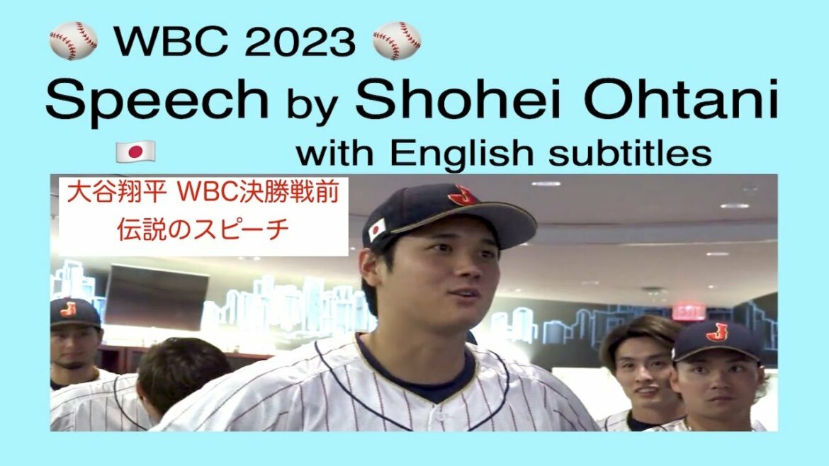 大谷翔平選手のWBC決勝戦前、円陣で侍ジャパン(日本代表)チームメイトへの伝説の声かけスピーチ(32秒間のメッセージ)です。(英語翻訳字幕付き) Let me just say one thing. Let’s stop admiring.