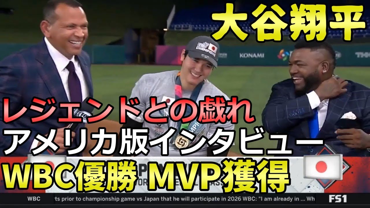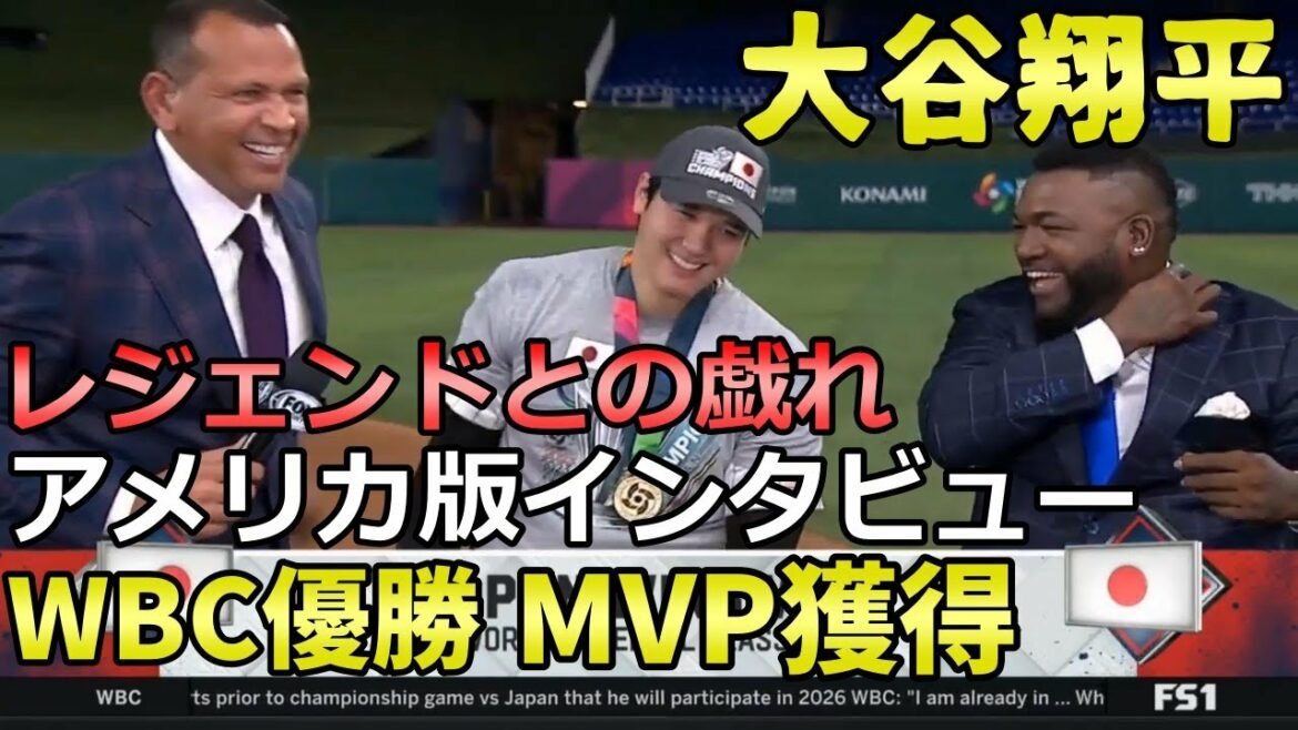 大谷翔平 WBC優勝 MVP獲得 アメリカ版 英語インタビューです。アレックスロドリゲス デビットオルティスのレジェンド達との楽しいインタビューです。