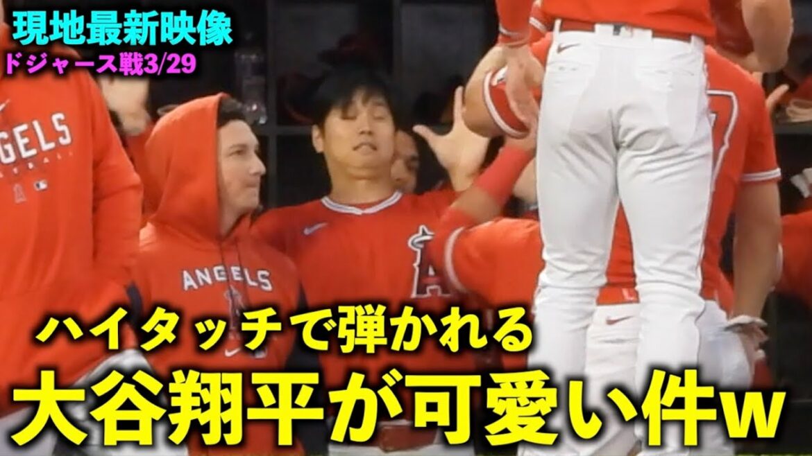 【現地最新映像】これは面白い!ハイタッチで弾かれる大谷翔平が可愛い件w 【現地映像】エンゼルスvsドジャース第3戦 3/29