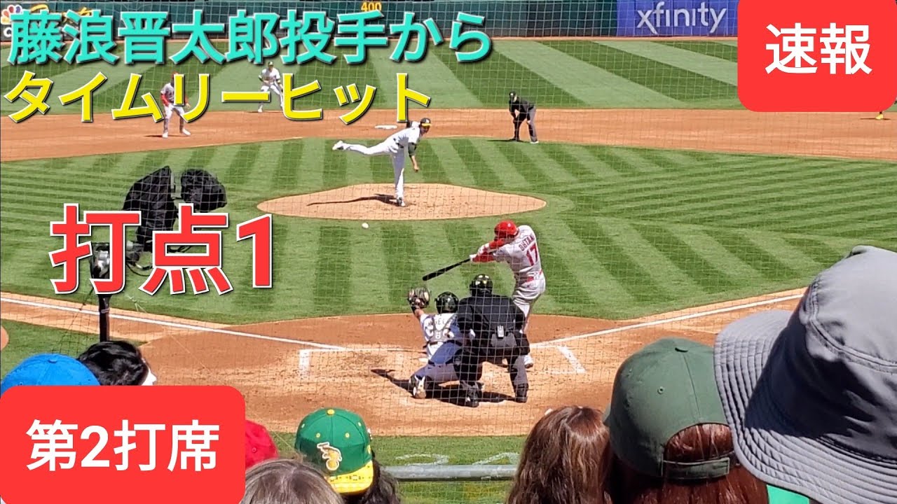 第2打席【大谷翔平選手】藤浪晋太郎投手からレフトへタイムリーヒットで貴重な追加点