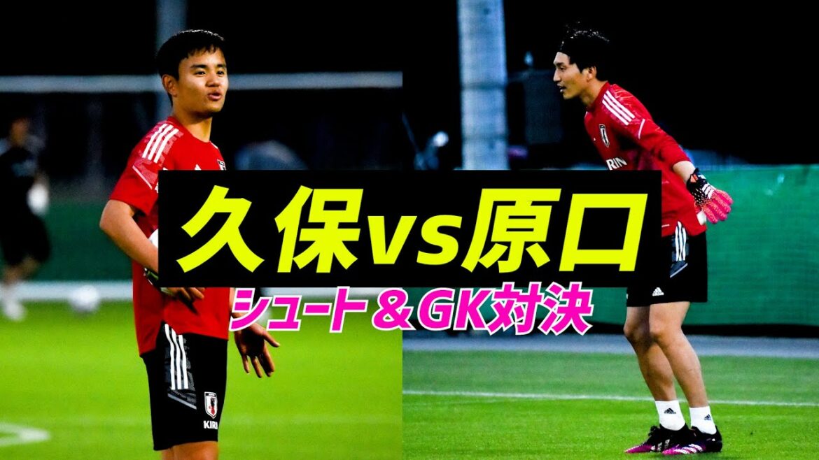 日本代表は30日、千葉市内でトレーニングを行った。W杯アジア2次予選・ミャンマー戦(○10-0)に向けて招集された26選手が参加。練習後には久保建英と原口元気がキッカー役とGK役を交互に務めるシュート対決を行った。